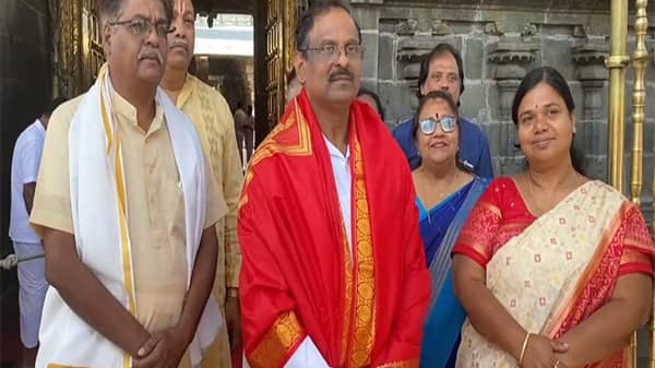 Tirumala: Ahead of the GSLV-F15/ NVS-02 rocket launch scheduled for Wednesday, ISRO Chairman Dr. V. Narayanan, along with a team of scientists, visited Lord Venkateswara temple in Tirumala.