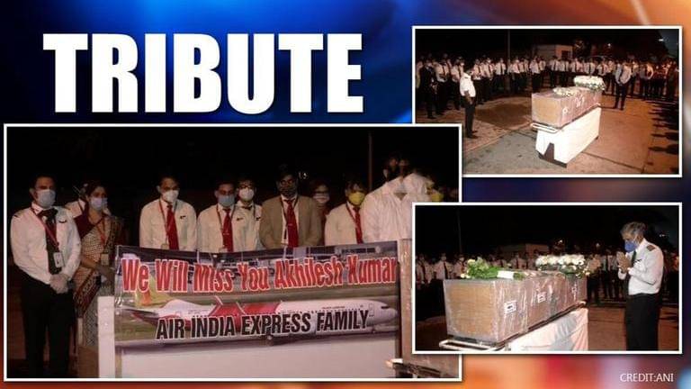 Air India Express employees on Sunday paid their rich tributes to co-pilot Akhilesh Kumar, who lost his life in the Kozhikode plane crash incident.