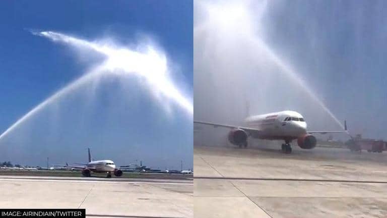 The video shows water spurring from opposite directions while the aeroplane glides in between the water cannons. AI-267 glides softly along the runway after landing. Since being shared on Twitter five hours ago, the video has been viewed over 6,500 times.