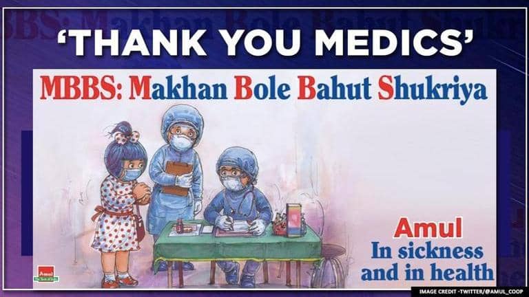 #Amul Topical: Gratitude to our healthcare workers who have put themselves at risk from CoVid 19 pic.twitter.com/WcylJcngds