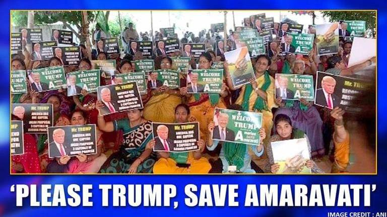 Protesters raise slogans 'Please Trump, Save Amaravati' in Andhra Pradesh