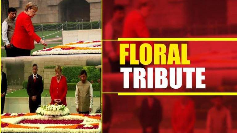 German Chancellor Angela Merkel paid a floral tribute to Mahatma Gandhi at Rajghat in Delhi. She is on a two-day visit to Delhi for fifth India-Germany IGC