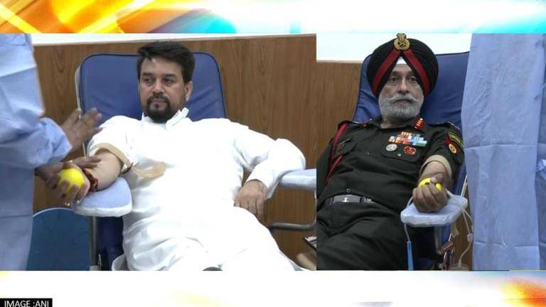 Anurag Thakur, officers, donate blood on Territorial Army's 73rd Raising Day