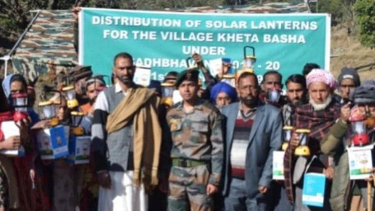 As part of 'Operation Goodwill', the Army on Sunday distributed solar rechargeable lanterns in a remote village of Rajouri district in Jammu and Kashmir.