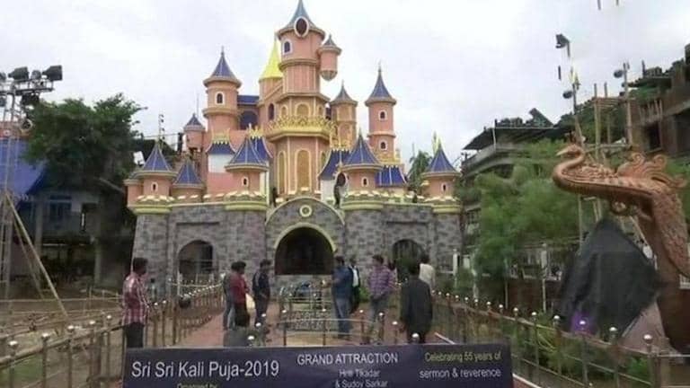 While Durga Puja this year witnessed theme-based pandals across various states of the country, a Kali Puja pandal in the Kahilipara Colony Bazar in Guwahati, Assam has been designed based on the theme of 'Disneyland in Paris'. The pandal was prepared by the Vivekananda Sporting Club of Guwahati with a project budget cost of around Rs 22 lakhs. Every year, the club organises Kali Puja along with a social awareness campaign and this year, in order to save the environment, they have fixed a target to plant around 500 plants.
