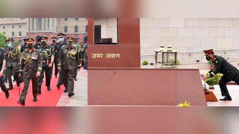 Bangladesh Army Chief General Shafiuddin Ahmed paid tributes at the National War Memorial in New Delhi to the Indian soldiers who died in the Independence war