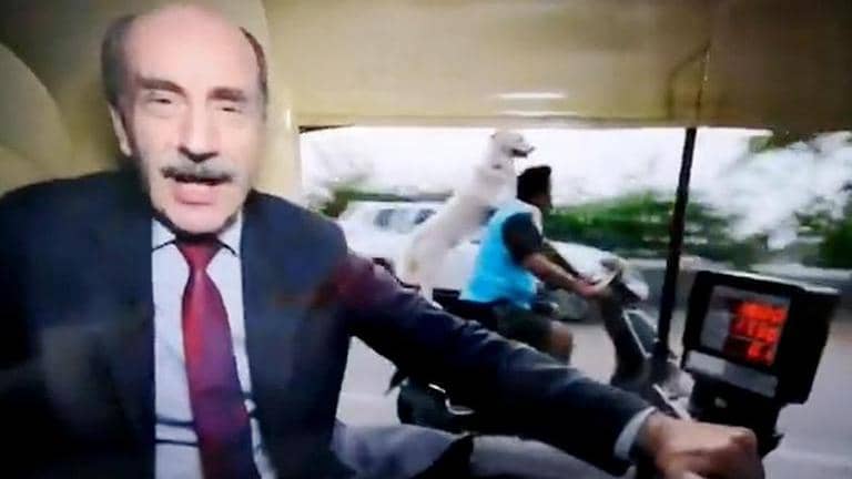 BBC's Tom Brook ending monologue of the episode of Talking Movies for BBC was shot in an autorickshaw. During the last moments, a white dog stole the spotlight.