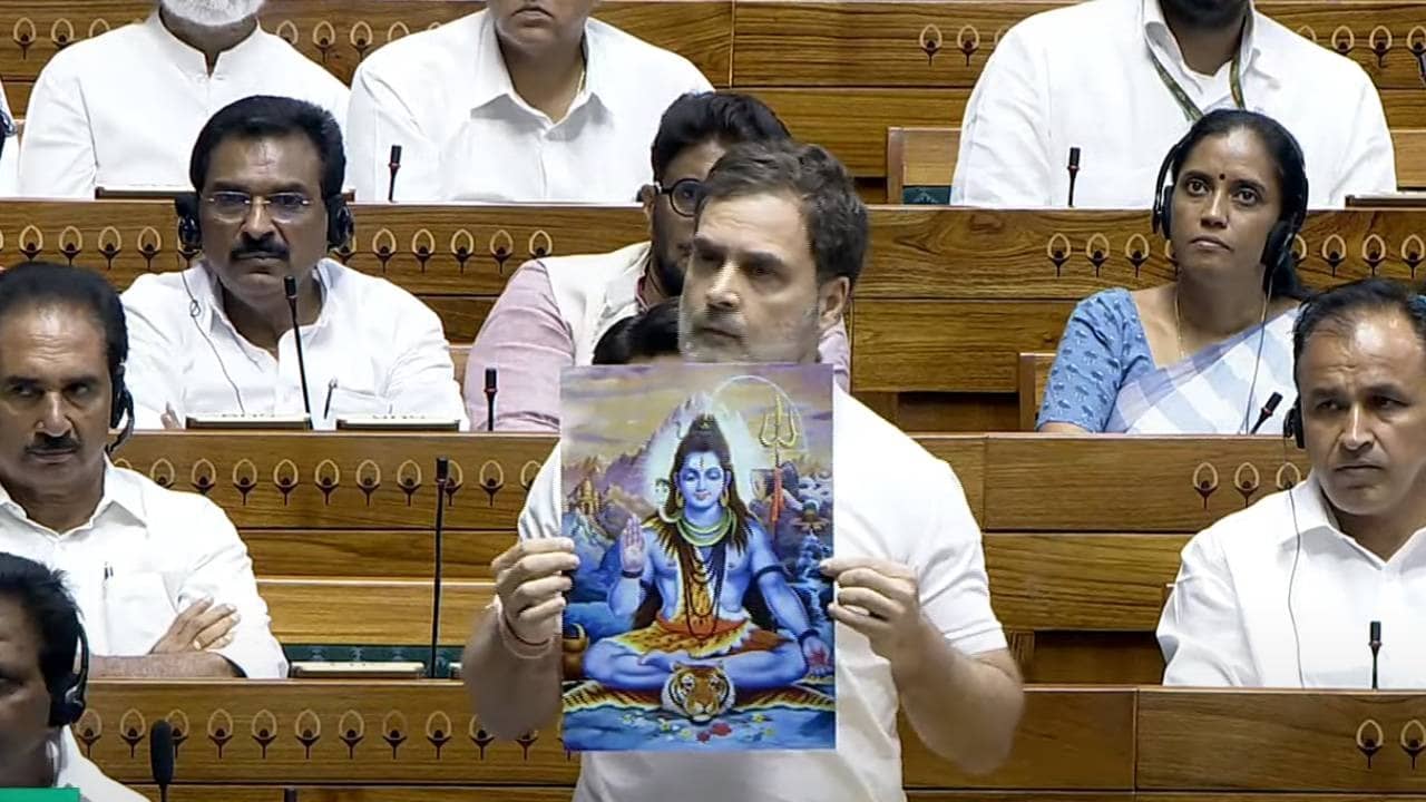 On July 1, Gandhi, while speaking during the debate on the Motion of Thanks on the President's Address held up pictures of Lord Shiva.