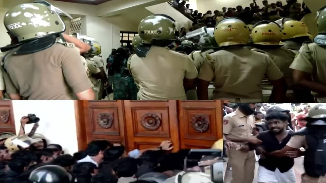 A large police force was deployed on the Kerala University campus on Tuesday after SFI activists entered the premises to stage a protest. The demonstration quickly escalated, prompting the police to step in and restore order.
