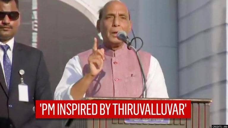 Rajnath Singh also shared how Prime Minister Narendra Modi had been inspired by the ideals professed by Tamil poet Thiruvalluvar in his text, Thirukkural.Â