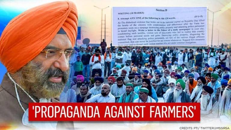 Questioning the school for the controversial question, Shiromani Akali Dal (SAD) leader Majinder Singh Sirsa said it was trying to spreading communal hatred by running maligning the protesting farmers and portraying them as violent attackers in minds of children.