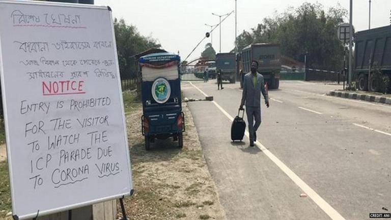 A notice put up at the Fulbari border read, "Entry is prohibited for the visitors to watch the ICP parade due to Coronavirus," The message was written in English and Bengali languages.