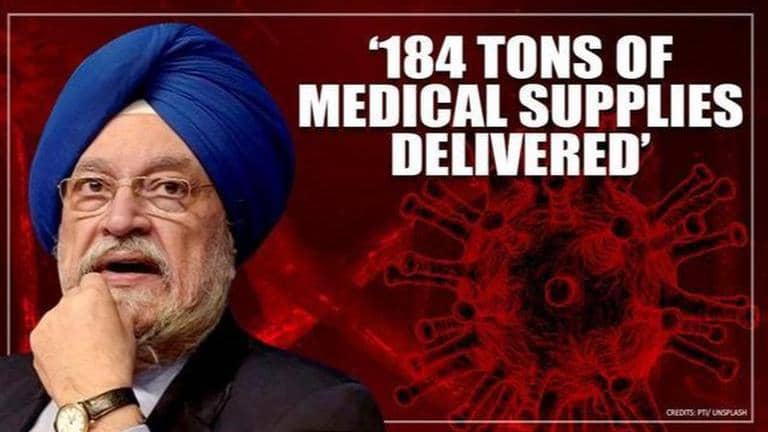 In the thick of Coronavirus, Over 184 tons of medical supplies have been delivered during the lockdown period, the Union Ministry of Civil Aviation (MoCA) said