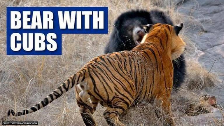 Viral video shows mother bear chasing away 2 tigers in Ranthambore National Park; watch