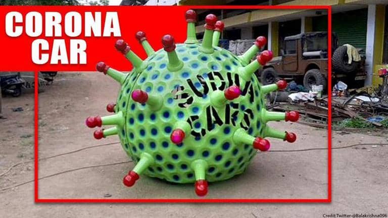 Here is the #coronavirus car made by Sudhakar from #Hyderabad.#COVID #COVIDー19 #HyderabadLockdown #coronavirus #coronavirus pic.twitter.com/LDVS2bpAI8