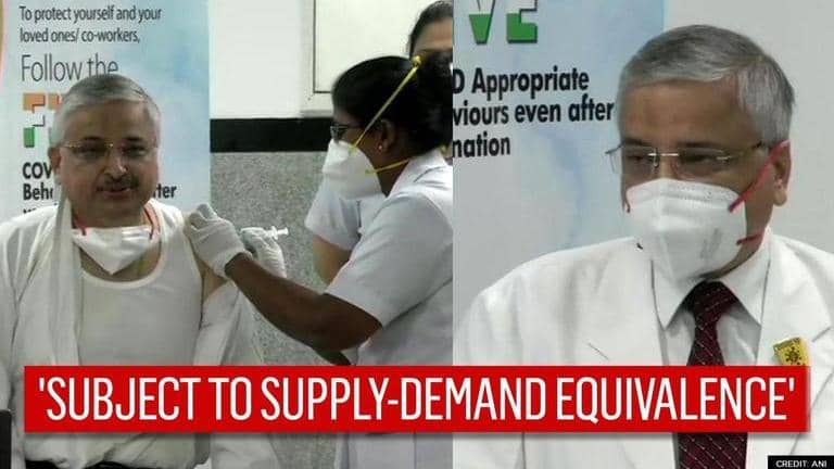 "The vaccine will be available in the open market only when prime targets-people to be vaccinated-are covered and there's an equivalence of supply-demand. Hopefully, there'd be such a situation by year-end or before that. Then there would be a likelihood of vaccine to come to open market," said Dr. Randeep Guleria.