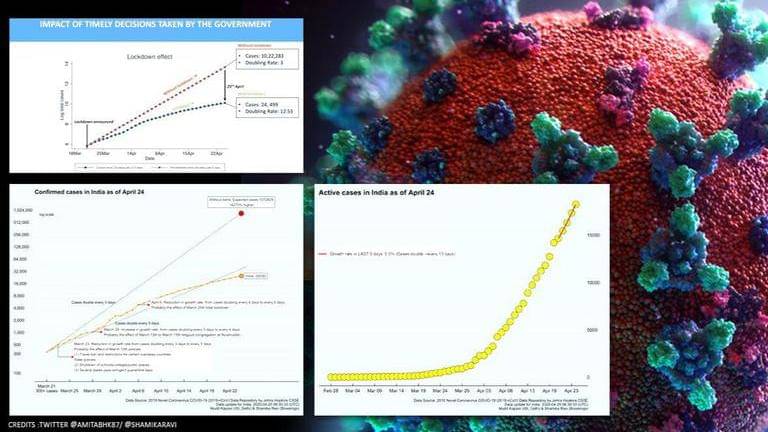 The lockdown imposed by the government has increased the doubling rate from to 12.53 days, versus the three days it would have been but for the lockdown; which could have witnessed the country recording over 10 lakh positive - almost 44 times higher than the current number of cases, according to the graphical representation of data analysed by Chief Executive Officer of Niti Aayog, Amitabh Kant on Sunday, most definitely based on mathematical modelling.