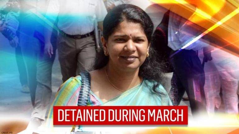DMK MP Kanimozhi was detained by the Tamil Nadu police on Monday after she led a candle march to the Governor's House demanding justice for the Hathras victim