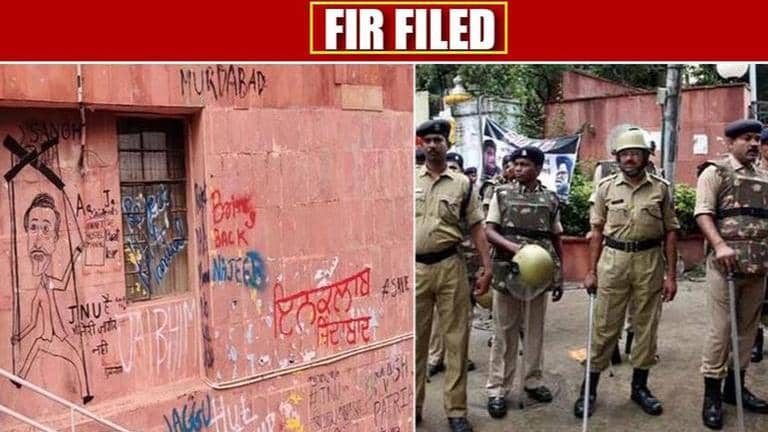 Cracking down on miscreants, Delhi police has lodged an FIR on Sunday, in the 'defacement of public property' at Jawaharlal Nehru University, after 2 complaints