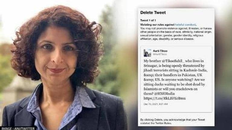 On January 6, Aarti Tikoo approached the Delhi High Court against the blocking of her Twitter account over a post where she called out 'extremists' for sending 'death threats' to her brother. Twitter had restrained Tikoo's account on December 15 over a tweet where she sought protection from the Ministry of Home Affairs (MHA) for her brother who lives in Srinagar. Claiming that Sahil Tikoo was being openly threatened by 'jihadi' terrorists via Twitter Spaces, the journalist had demanded protection and safety for her brother.