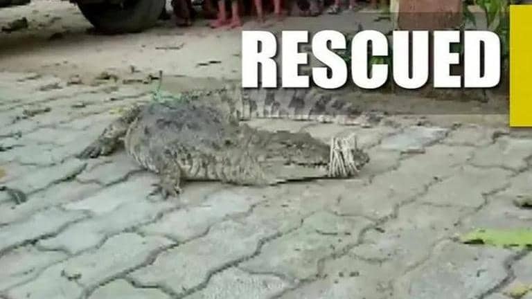 Police rescued a crocodile from a residential area in UP after residents complained. They gave the animal to the forest officials, who released it in the river.
