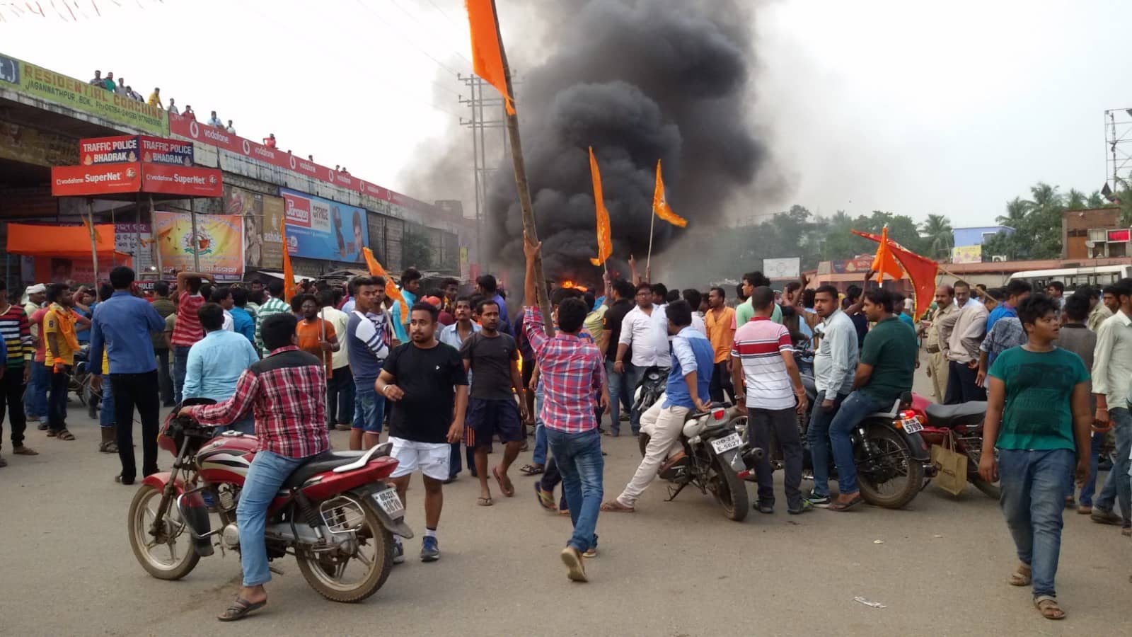 Assistant Fire Officer Sanjeeb Kumar Behera reported that rioters were throwing stones. However, police have been deployed to manage the situation.
