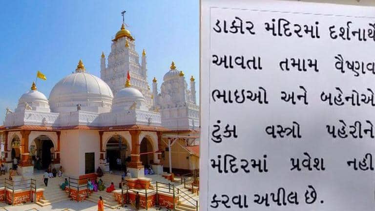 The temple located in Dakor, Kheda district, Gujarat, has recently displayed posters around its premises, informing devotees that entry will not be permitted for individuals wearing short dresses or short and revealing clothing. The decision comes in response to a long-standing demand from devotees, with the temple authorities emphasizing that it is intended to uphold the sanctity of the sacred place. Both men and women are requested to adhere to this dress code.