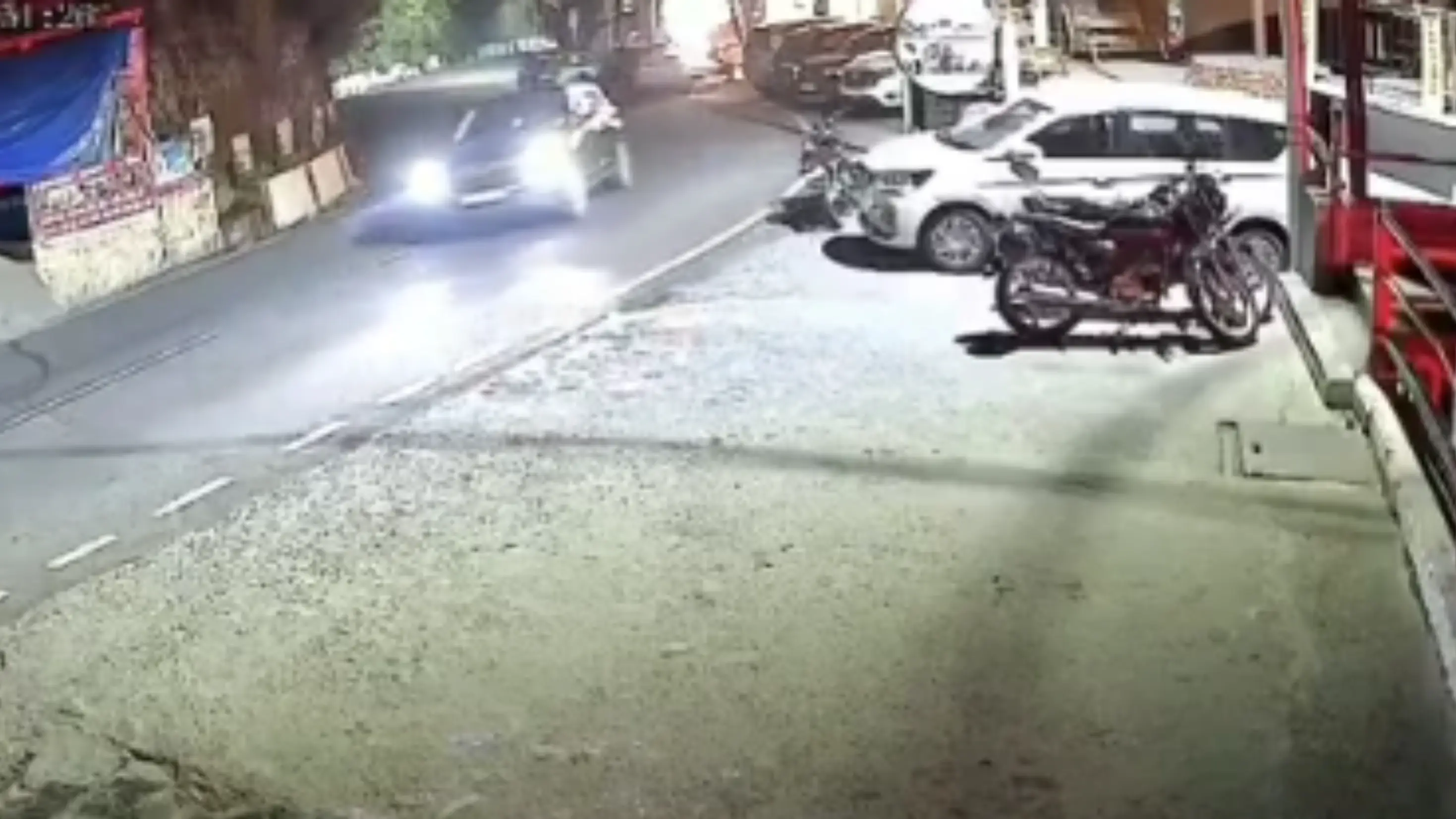 The entire incident was recorded on a nearby CCTV camera, providing a clear view of the dramatic collision. The footage, which has since gone viral, shows the moment of impact, highlighting the intensity of the crash and the narrow escape of those inside the vehicle.