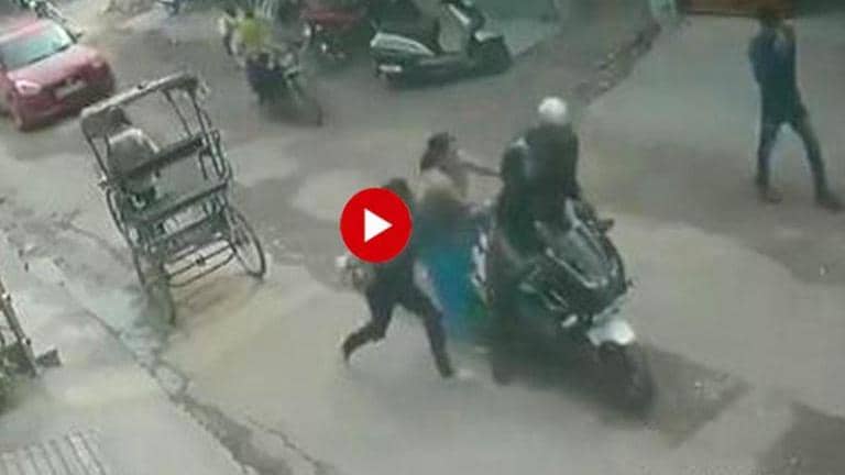 The CCTV footage shows a woman and her daughter walking on streets of Nangloi in Delhi, when two men on a bike are seen approaching them. They try to slow down their bike and snatch away the woman's necklace. The women react immediately, running behind and grabbing one of the snatchers. As the men lose their balance and fall, they are dragged down, thrashed and beaten. Meanwhile, a car stops and the man inside jumps to help the women prevent the thieves from escaping. One chain-snatcher gets beaten mercilessly, while the other manages to escape.