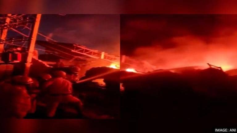 A video from the spot of the incident shared by news agency ANI shows huge flames rising from the godown followed by visuals of the firefighters trying to control the fire.