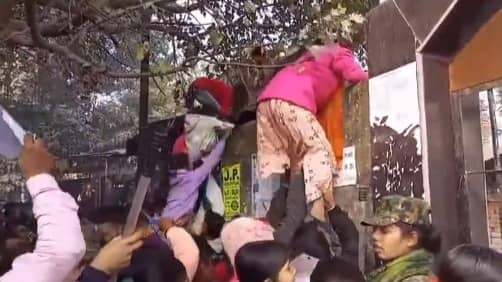 As per media reports, the incharges at the venue closed the entry half an hour before the exam prompting students to take the risk of climbing walls.