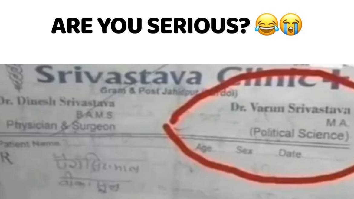 An image of Dr. Srivastava's letterhead has ignited a wildfire of amusement across social media platforms. Instead of the expected "MBBS" or "MD," the letterhead proudly proclaims his qualification as an “MA in political science.”