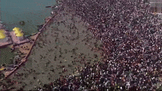 Watch | Aerial Shots of Devotees Taking Dip in Triveni Sangam