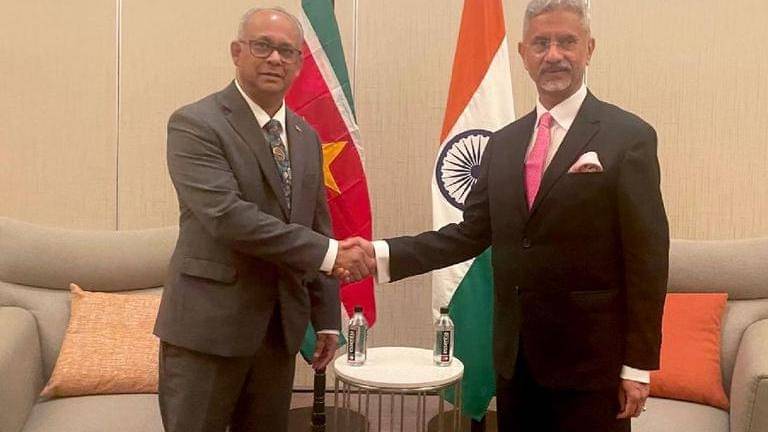 External Affairs Minister S Jaishankar on Friday met his counterpart from Surinam Albert Ramdin here in Guyana's capital and discussed development partnership, cultural cooperation, security and climate issues.