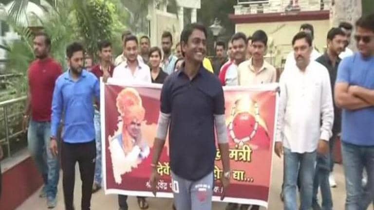 Amid the power tussle between BJP and Shiv Sena, a follower of the outgoing Chief Minister Devendra Fadnavis on Wednesday performed a ritual by walking barefoot to Ganesh Mandir Tekdi and prayed that Fadnavis led BJP government is formed again in Maharashtra. The man identified as Vipin Telgote performed the ritual by bowing down in reverence as he reaches the temple. He also wore a t-shirt having 'Mai Bhi Devendra' printed on it in Hindi, with BJP's lotus symbol below it. People also held posters with pictures of Fadnavis on it. Speaking to ANI, Telgote said,