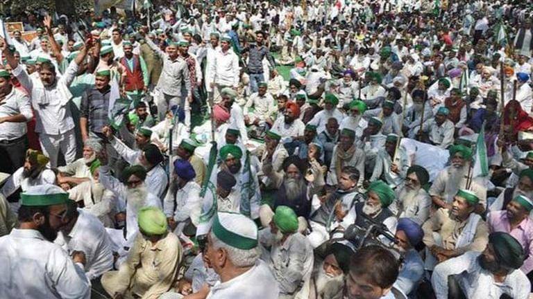 Farmers agitating for withdrawal of stubble-burning cases filed against them in Punjab's Faridkot district on Monday