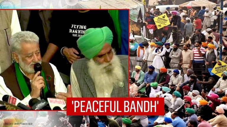 Addressing the media ahead of the Bharat Bandh call on Tuesday, the farmers' representatives have reiterated that it will be a 'peaceful' bandh. Protesting against the agriculture laws introduced by the Centre amid the discussions with Centre, farmers' unions have asserting that there will be a 'Chakka Jam' till 3 pm on Tuesday. The Bandh call issued by farmers has also been supported by several Opposition parties as they demanded the withdrawal of the three contentious agrarian laws.