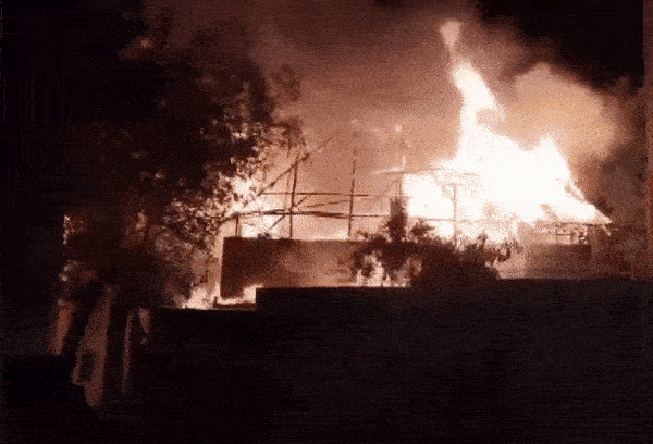 The flames have caused considerable alarm among residents, with thick smoke billowing into the air. Eyewitnesses reported hearing loud explosions as the fire spread, prompting immediate calls for help.