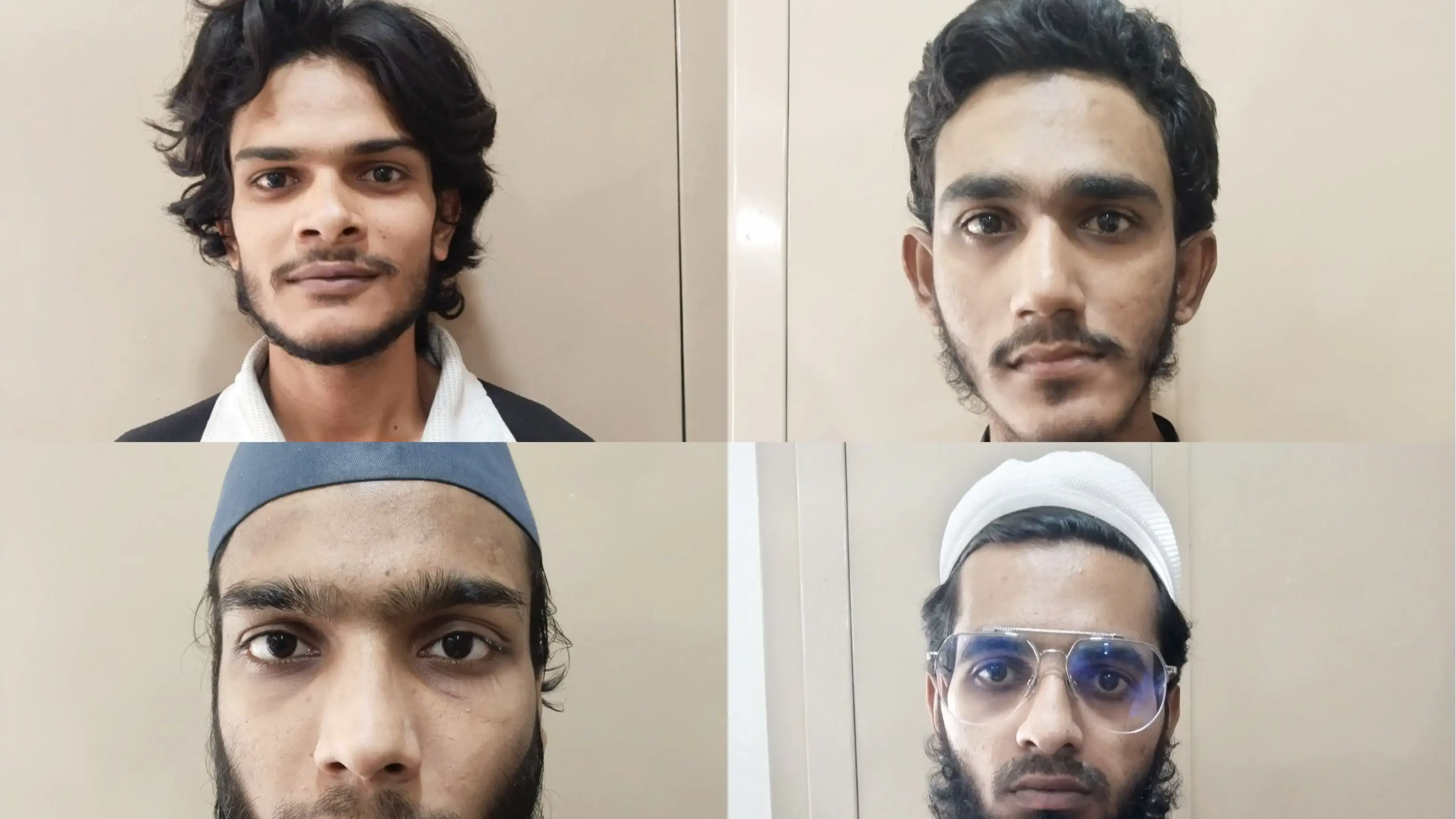 All four have been identified as Fardeen Shaikh r/o Ahmedabad, Mohd Faiq r/o Delhi, Zeeshan Ali r/o Noida and Saifullah Qureshi r/o Modasa. An FIR has been registered under UAPA Sections 13, 18, 38, 39 (Unlawful Activities Prevention Act) and BNS Sections 113, 152, 196, 68 (Bharatiya Nyaya Sanhita).
