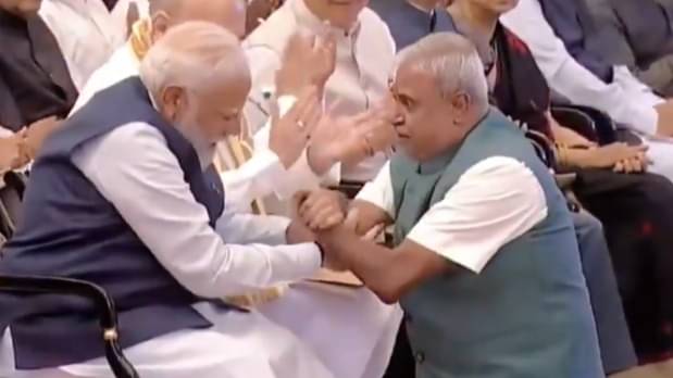 Dr Rajanna greeted PM Modi before receiving Padma Shri