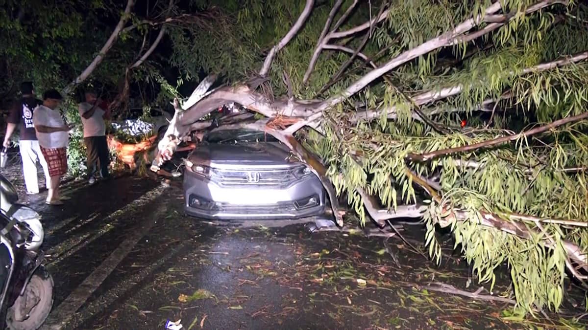 Strong winds originating from western disturbances uprooted many trees in Delhi, Noida, and Ghaziabad, which fell on vehicles, causing significant damage.
