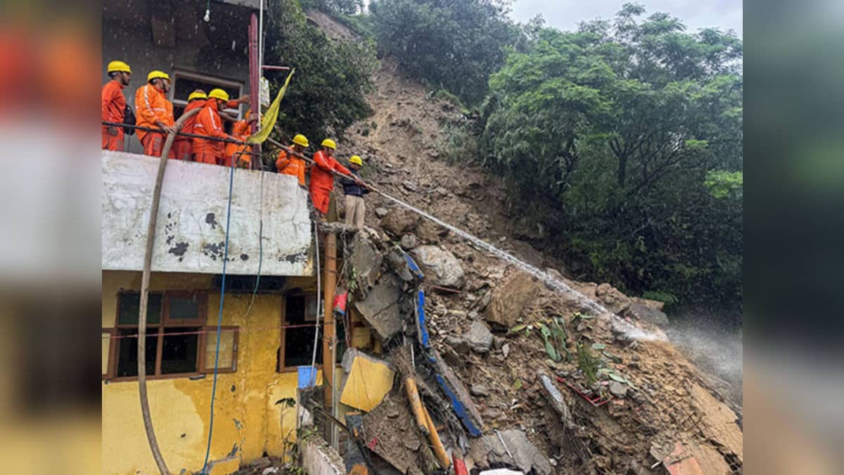 Kullu: Triggered by heavy rainfall, a massive landslide hit parts of Kullu in Himachal Pradesh. In the inner Akhada Bazaar of Kullu district, two to three houses have been damaged in the early hours of Thursday. The rescue team of the district administration, including NDRF (National Disaster Response Force), Home Guard, Fire Department, and Police Department teams, rushed to the site and initiated the rescue operation.