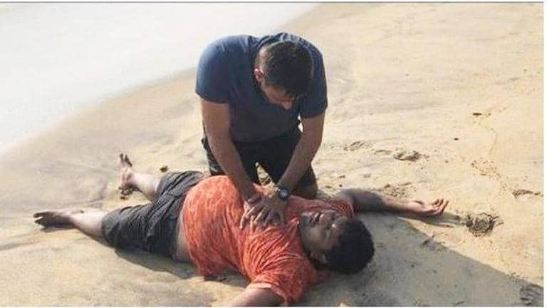 Once he managed to reach the shore, Lt Dalal had to deal with another obstacle as the victim was unconscious and not breathing.