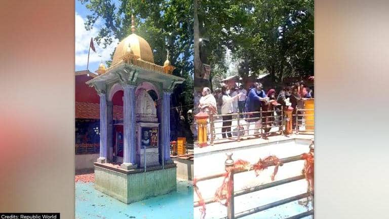 Hundreds of Kashmiri Pandits throng Valley's Kheer Bhawani temple; water omen positive