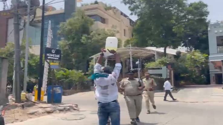 In a video shared by news agency PTI, a man clad in a white t-shirt is shown pouring petrol over himself. Promptly, police officers rushed towards him and doused him with water. Subsequently, the individual was taken to the police station in an auto-rickshaw.