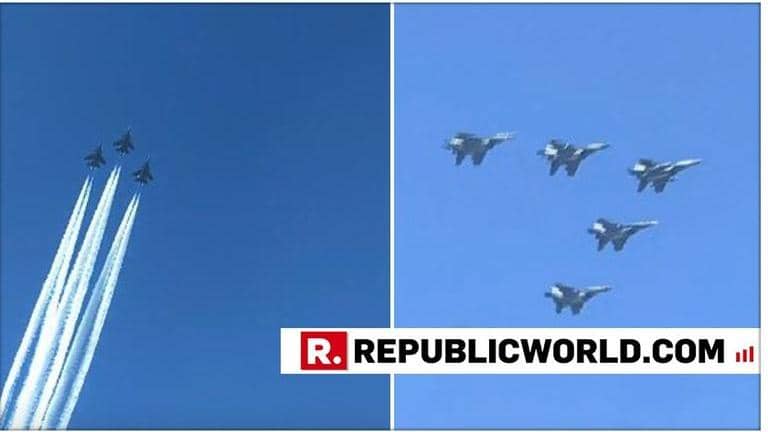 The end of the parade was marked by a single Sukhoi aircraft Su-30 MKI of the IAF performing the signature 'vertical charlie' in the air.