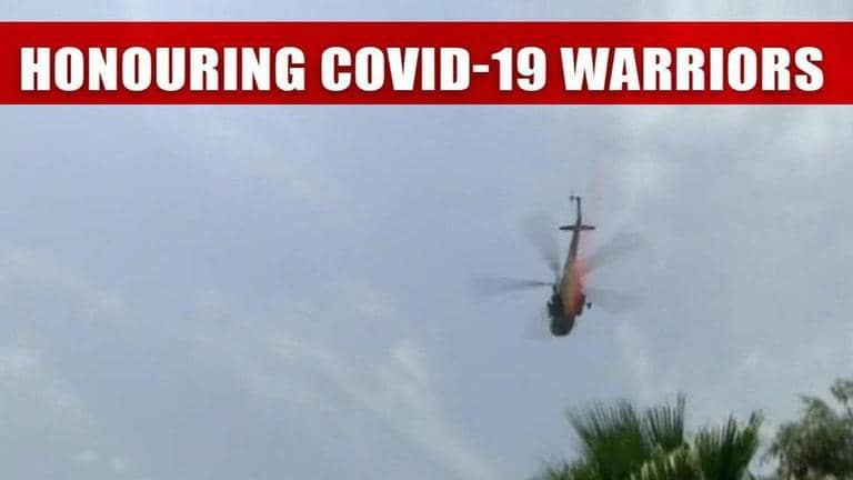 Flower petals were showered by an Indian Air Force helicopter on two hospitals on Sunday in honour of the front-line workers fighting the COVID-19 pandemic.