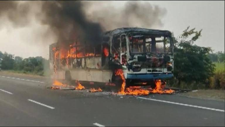 In a tragic incident that took place in Maharashtra’s Amravati on Tuesday afternoon, a state-run transport bus caught fire, though no one was injured in the incident as all 35 passengers onboard alighted safely.