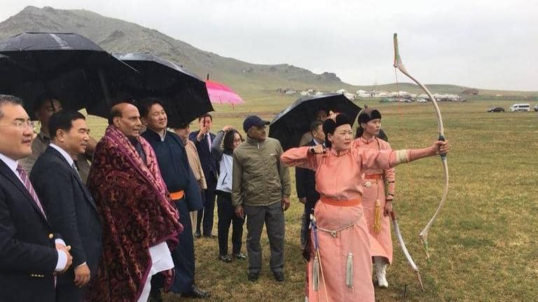 While he was in the central Asian country, Rajnath Singh attended the Mini Naadam festival organised in the rural areas of Ulaanbataar.