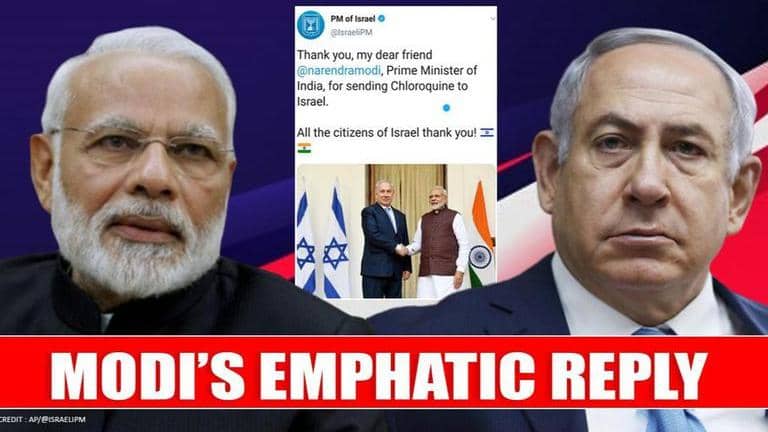 PM Modi replied to Israeli Prime Minister Benjamin Netanyahu who had thanked him for lifting the ban over the export of Hydroxychloroquine to Israel.